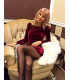 Short dress in burgundy made of velvet the back and neck are in shape of V.