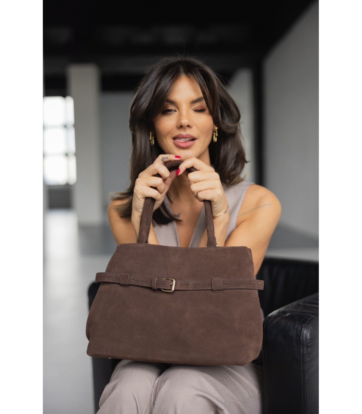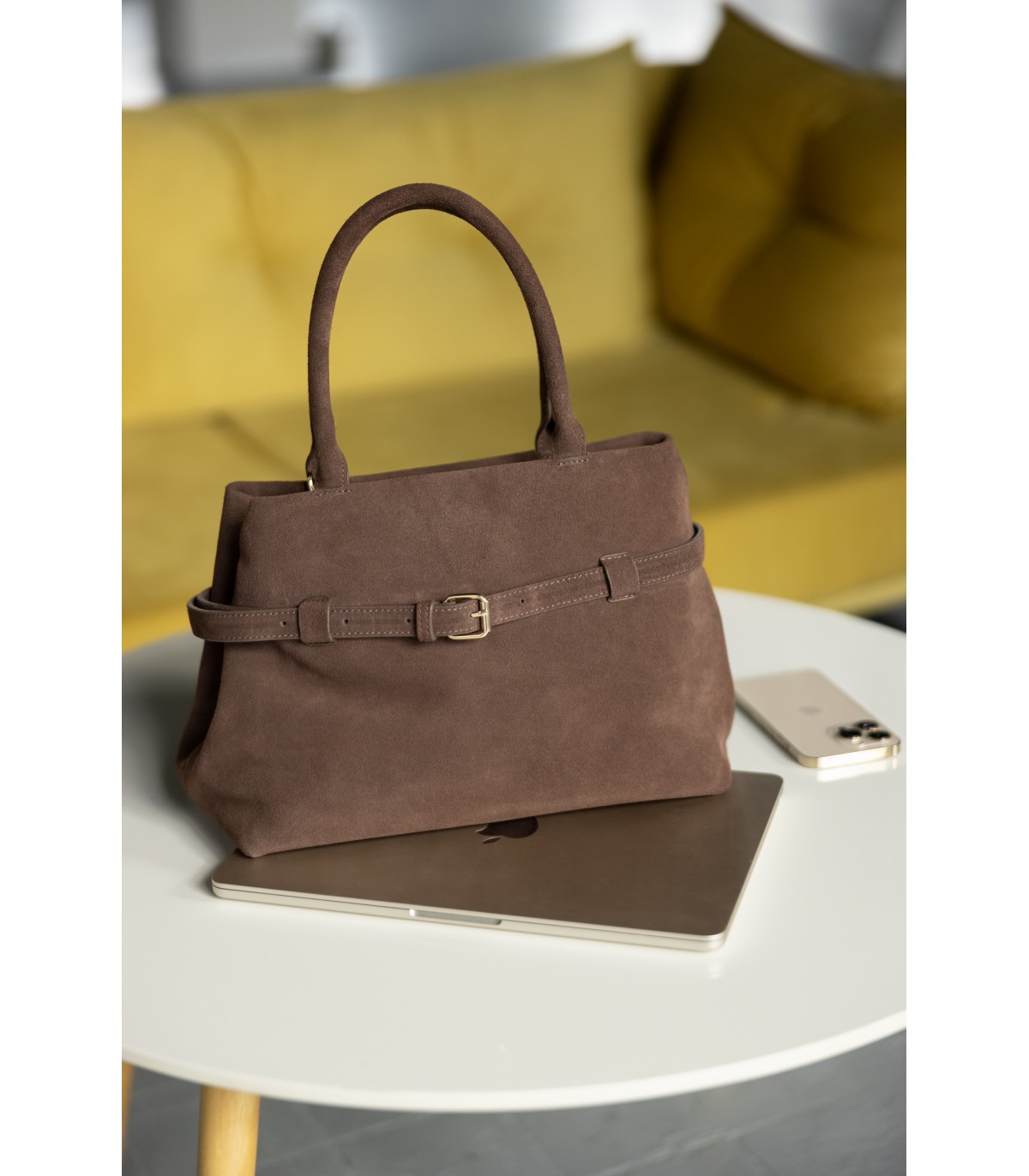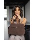 Medium size bag, natural cow leather, textile interior.