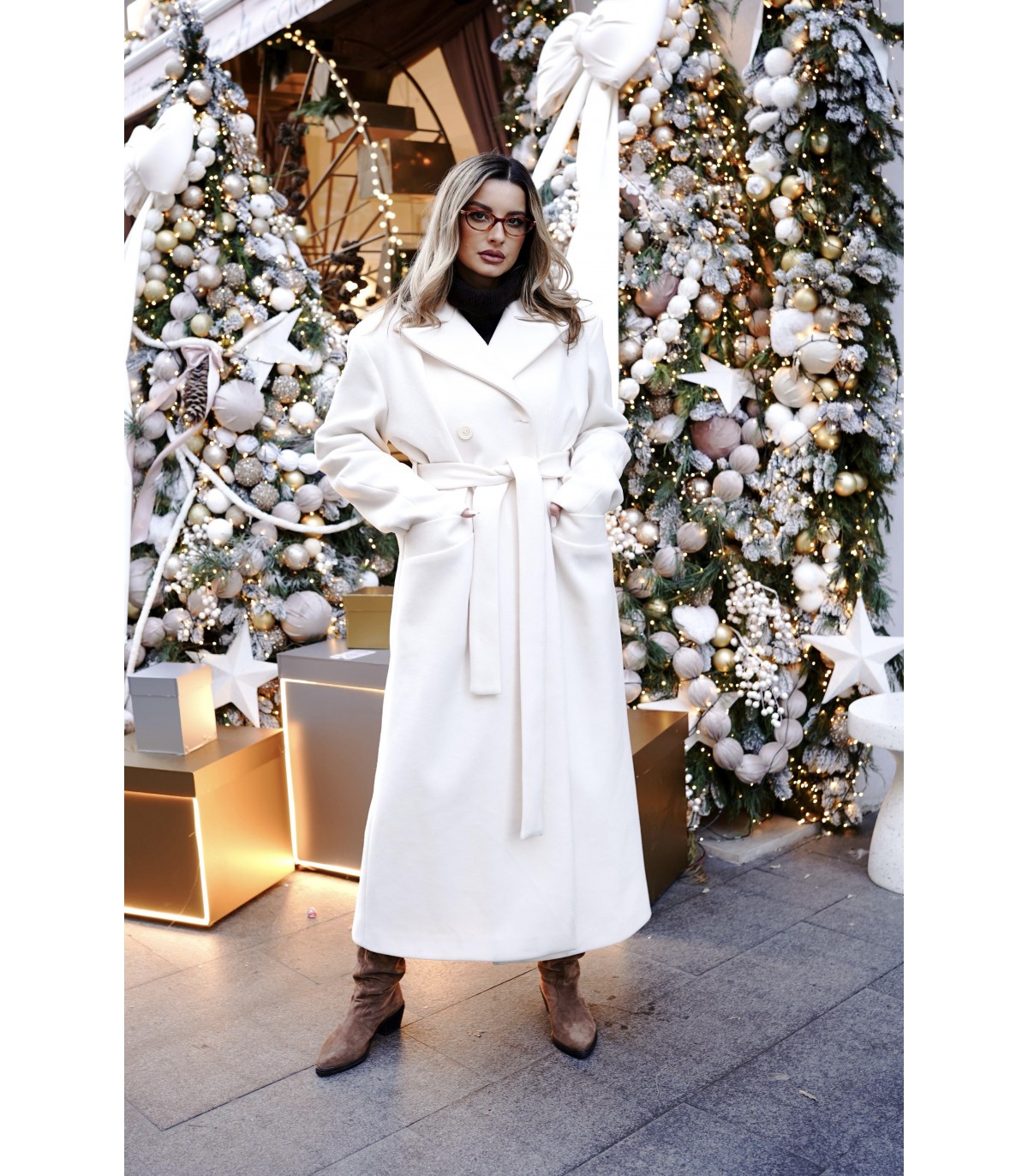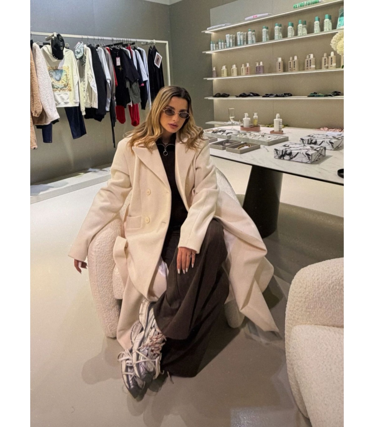 Coat in thick beige-camel fabric. It closes with a cord. The trendy element of this coat is the large collar and loose cut. The coat is made to order in 5-7 working days. It fits a person with the following...