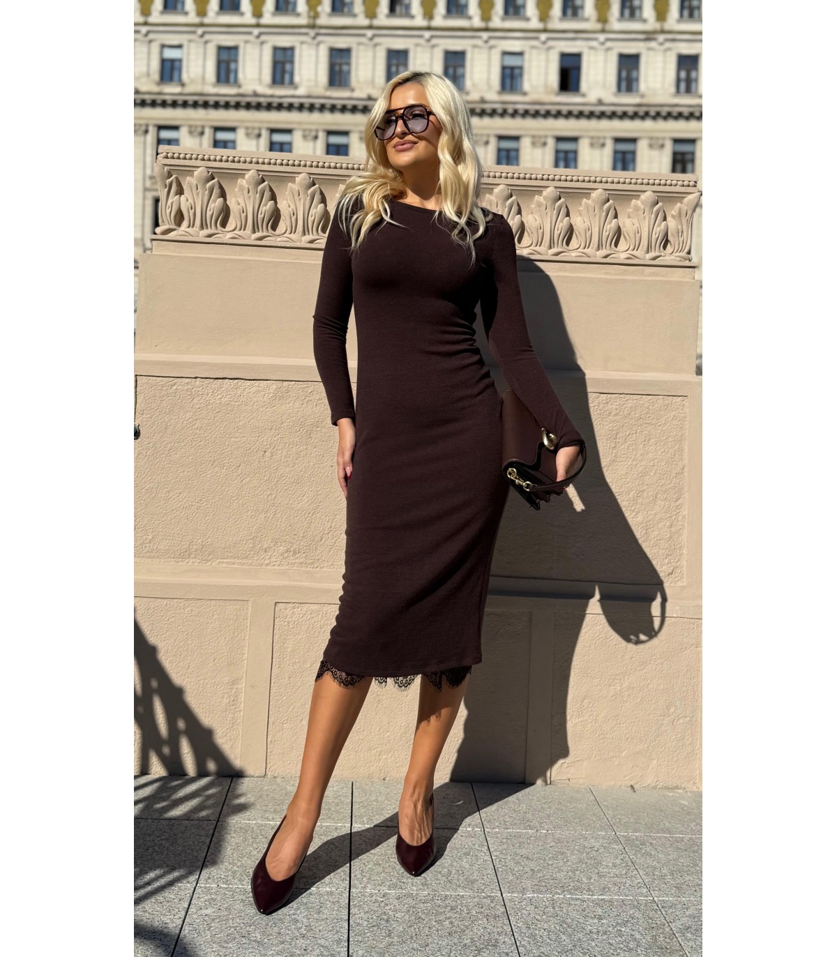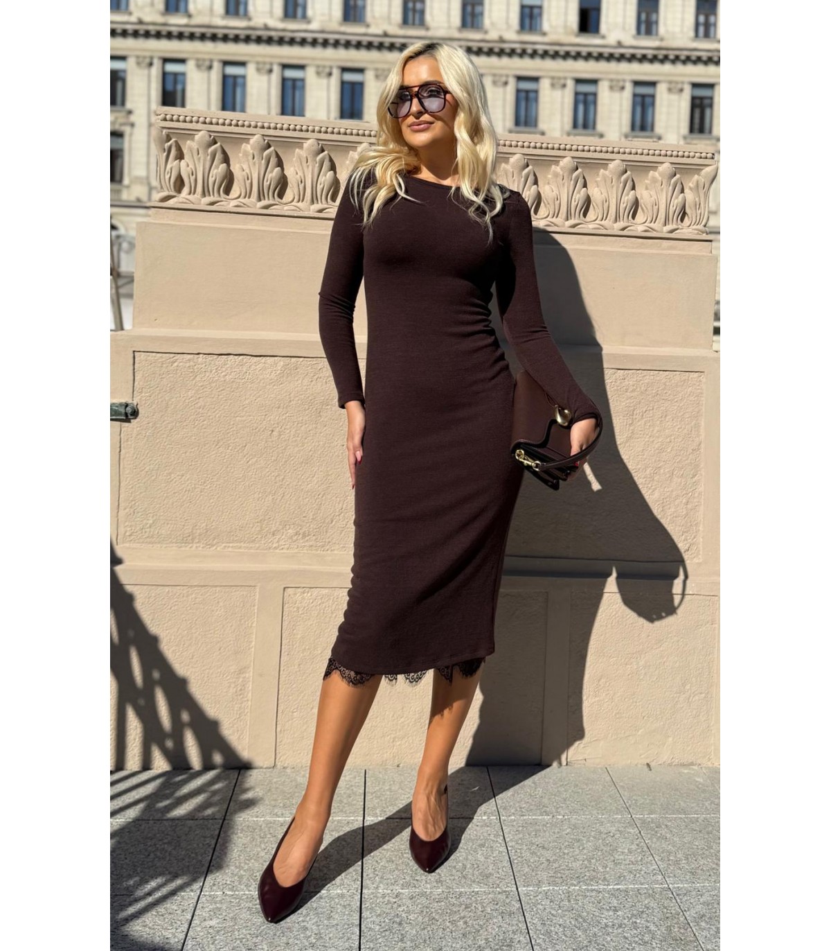 Midi dress, fitted, knitted, elastic
