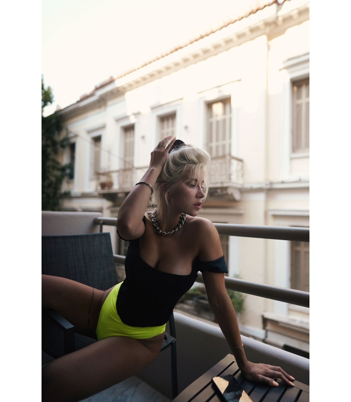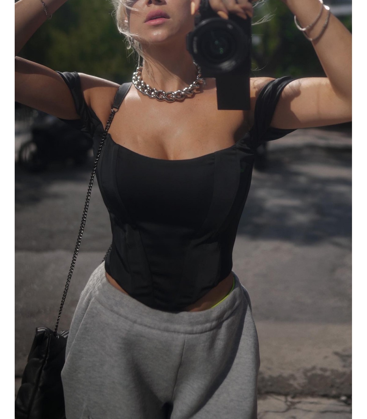 White dress with cups and a loose, double-breasted cut - double skirt, closed with a short frill ending - back zipper closure - short sleeves with elastic (can be worn over the shoulder or left down, puffs) The...