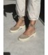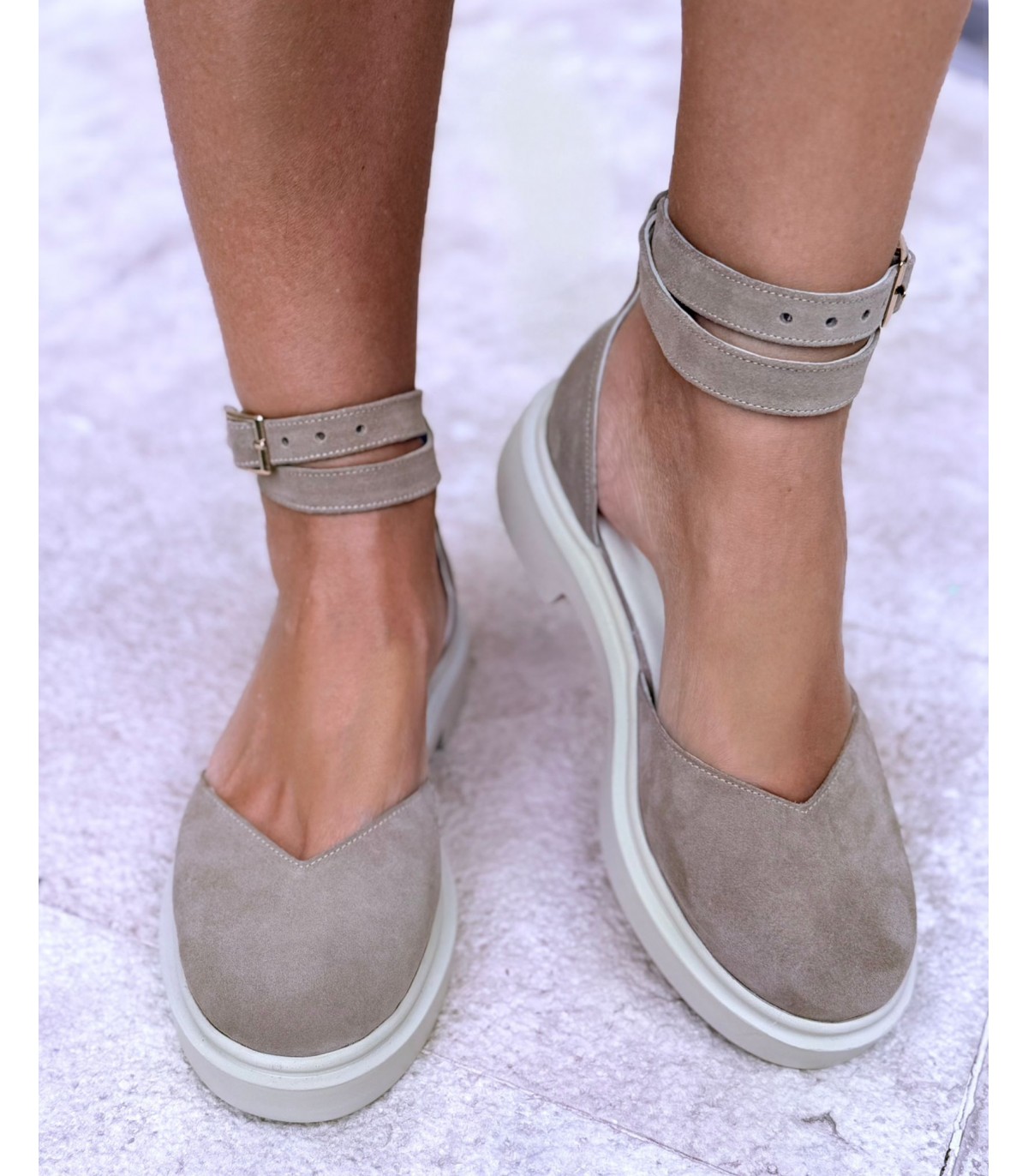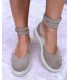 Shoes made of natural, black, patent leather, on a massive, elastic sole, accessorized with a pearl bracelet and a black satin bow