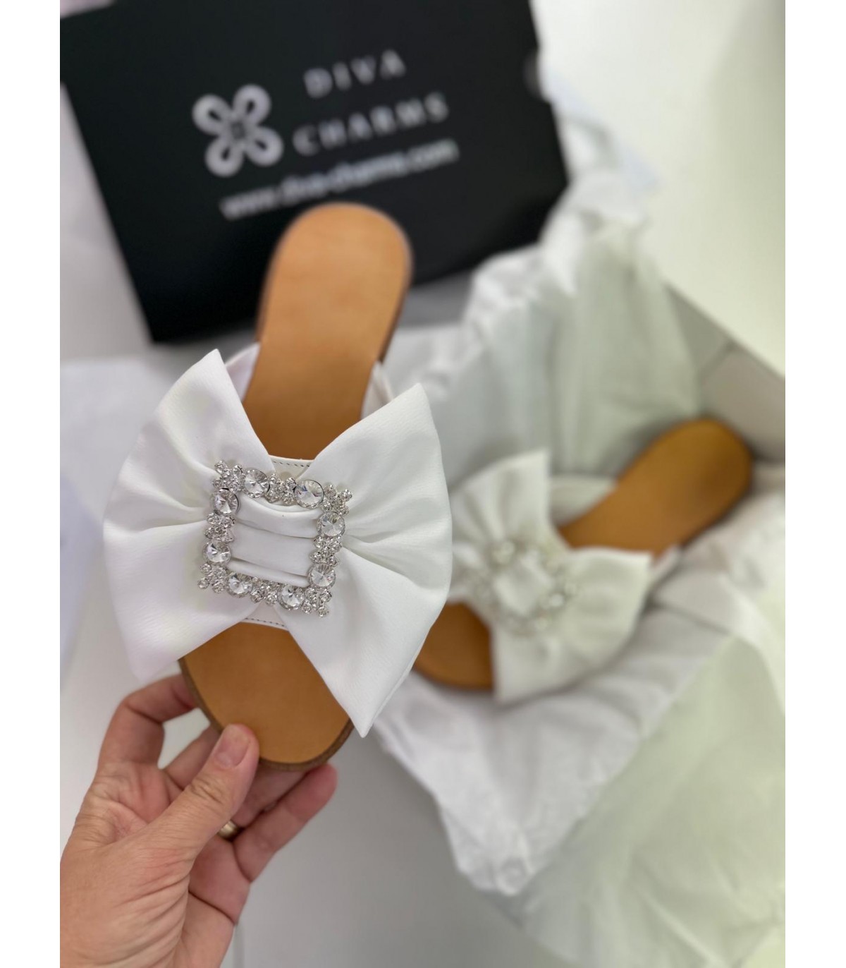 Slippers with 2 padded natural leather straps and golden buckle type accessory