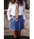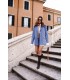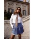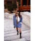 Blue fabric suit, consisting of a jacket and skirt with visible pockets made of white poplin