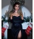 Long dress in black satin taffeta, with velvet cups, covered in sequins. The dress has a deep slit on the left leg, slit covered by