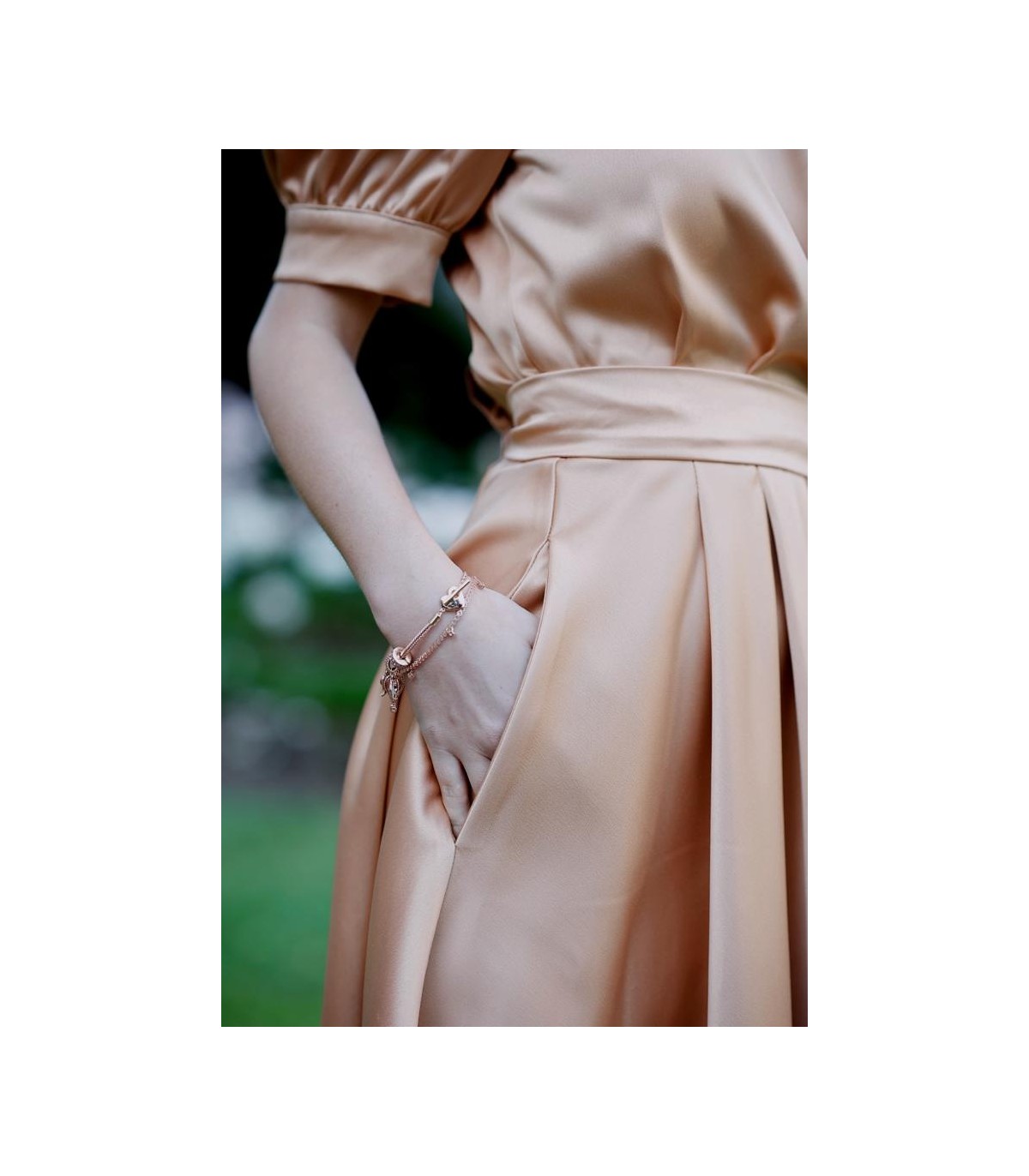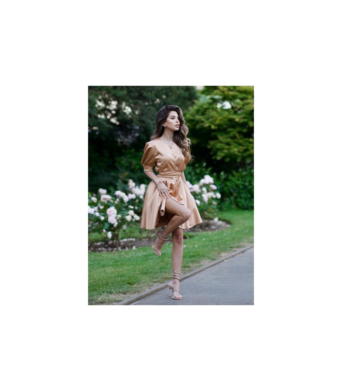 Long elastic dress, made of copper lurex - train on the back of the dress - closes with a zipper at the back - the dress is fully lined Fits sizes: XS: bust 86-88, waist 60-64, hips 86-90 S: bust 88-90, waist...