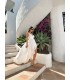Long dress in white satin veil, slightly creped.