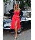 Midi dress, in matte red satin, lace-up and zipper closure at the back.