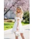 White dress with cups and a loose, double-breasted cut