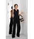 Suit consisting of an asymmetric vest and oversized trousers made of imitation linen