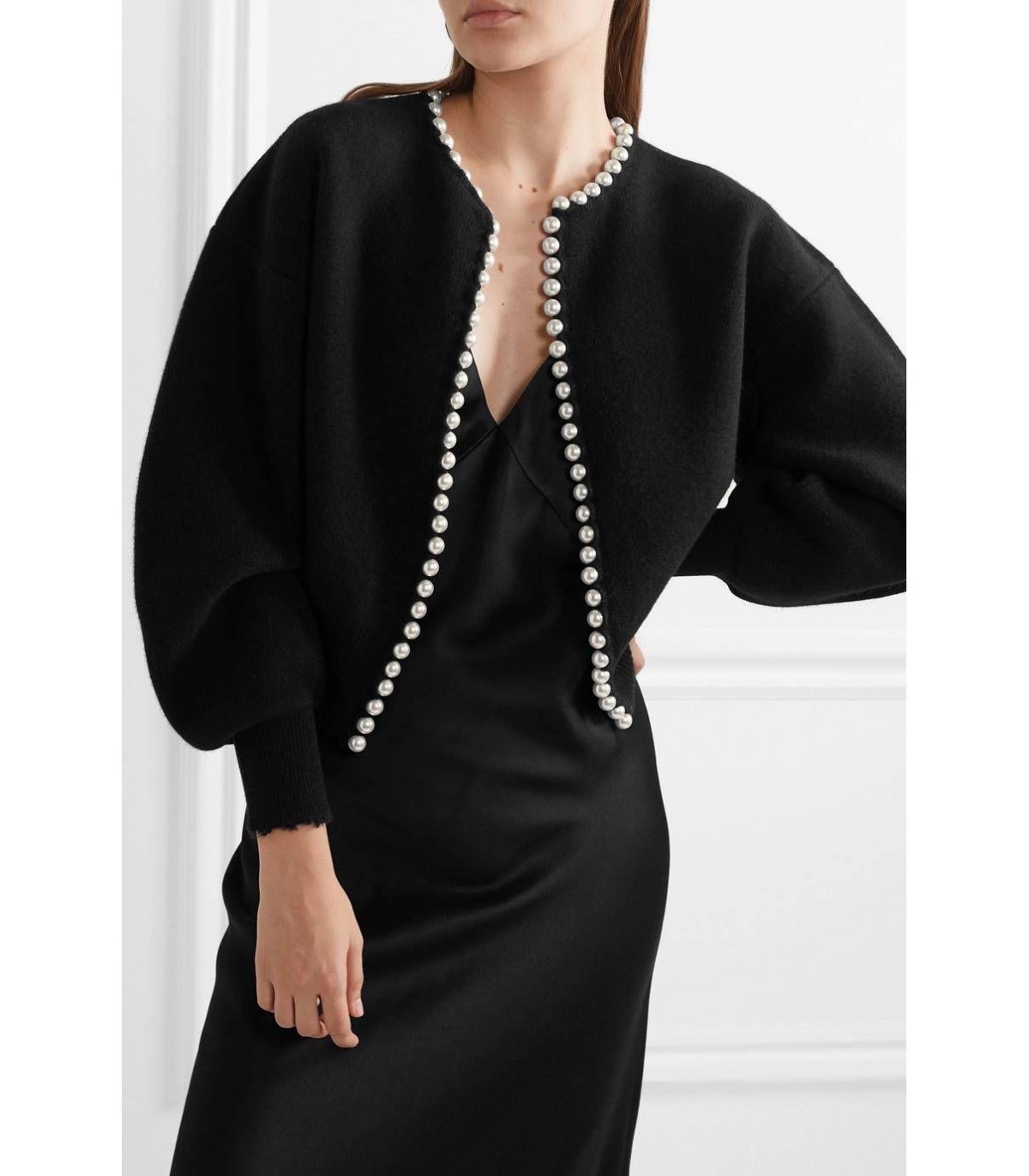 Medium length cardigan made of thick Ivoire white knitted fabric. It closes with a cord.