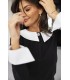 Short dress in black bistrech, with white cuffs and white poplin collar with a decorative button