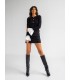 Long black licra dress with flared sleeves. The back has a deep cutout.