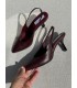 Cut-out sandals made of burgundy genuine leather, 7 cm heels