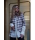Oversized, double-breasted shirt, white cotton poplin side and [checkered side with metal accessories ends