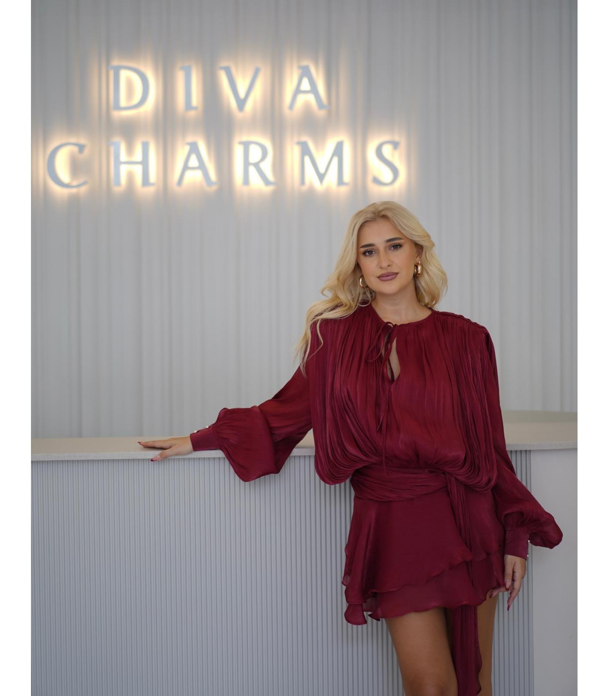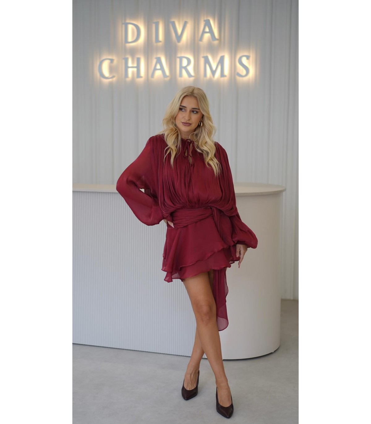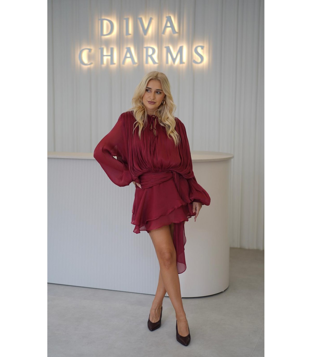 Short dress in matte red lycra, with two wide ruched bands that close in the front. The material is elastic. THE DRESS IS MADE TO ORDER IN 5-8 WORKING DAYS Fits sizes: XS: bust 86-88, waist 60-64, hips 86-90 S:...