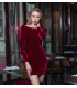Rochie scurta din catifea grena si decolteu la spate in forma de V.