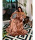 Rochie lungă elegantă, din satin cu talie elastică si cordon detasabil. Rochia are volan elastic, care poate fi purtat peste umeri sau peste bust.