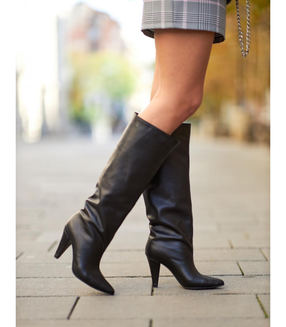 Cizme din piele neagra, captusite cu piele naturala la interior.