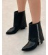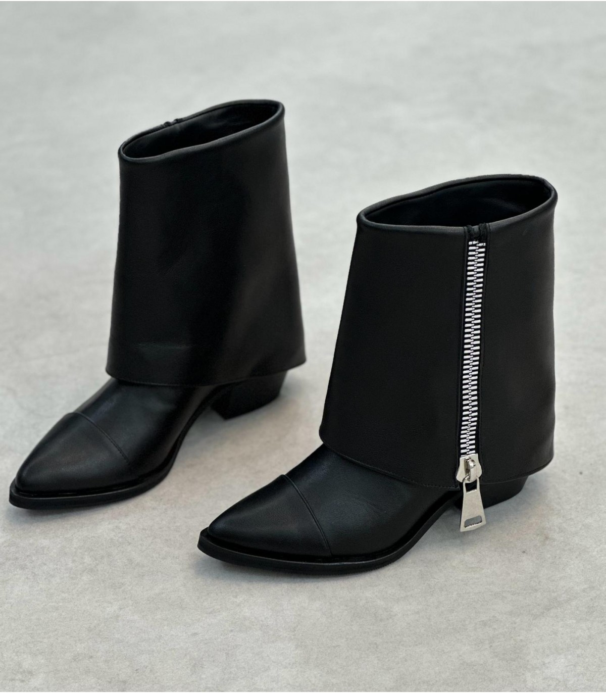 Cizme scurte din piele neagra, naturala, cu fermoar argintiu lateral.