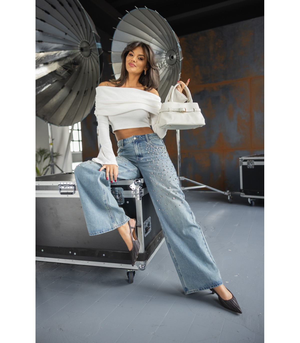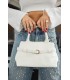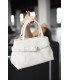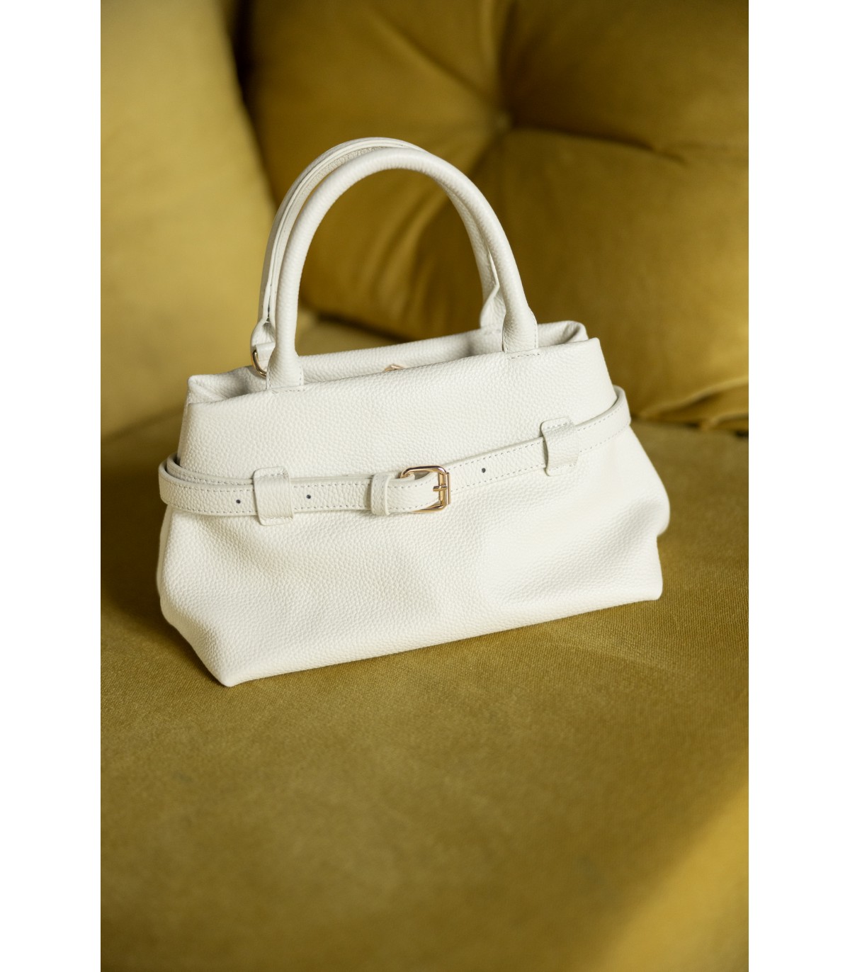 Geanta de marime medie, din piele naturala bizonata, alb-ivoire.