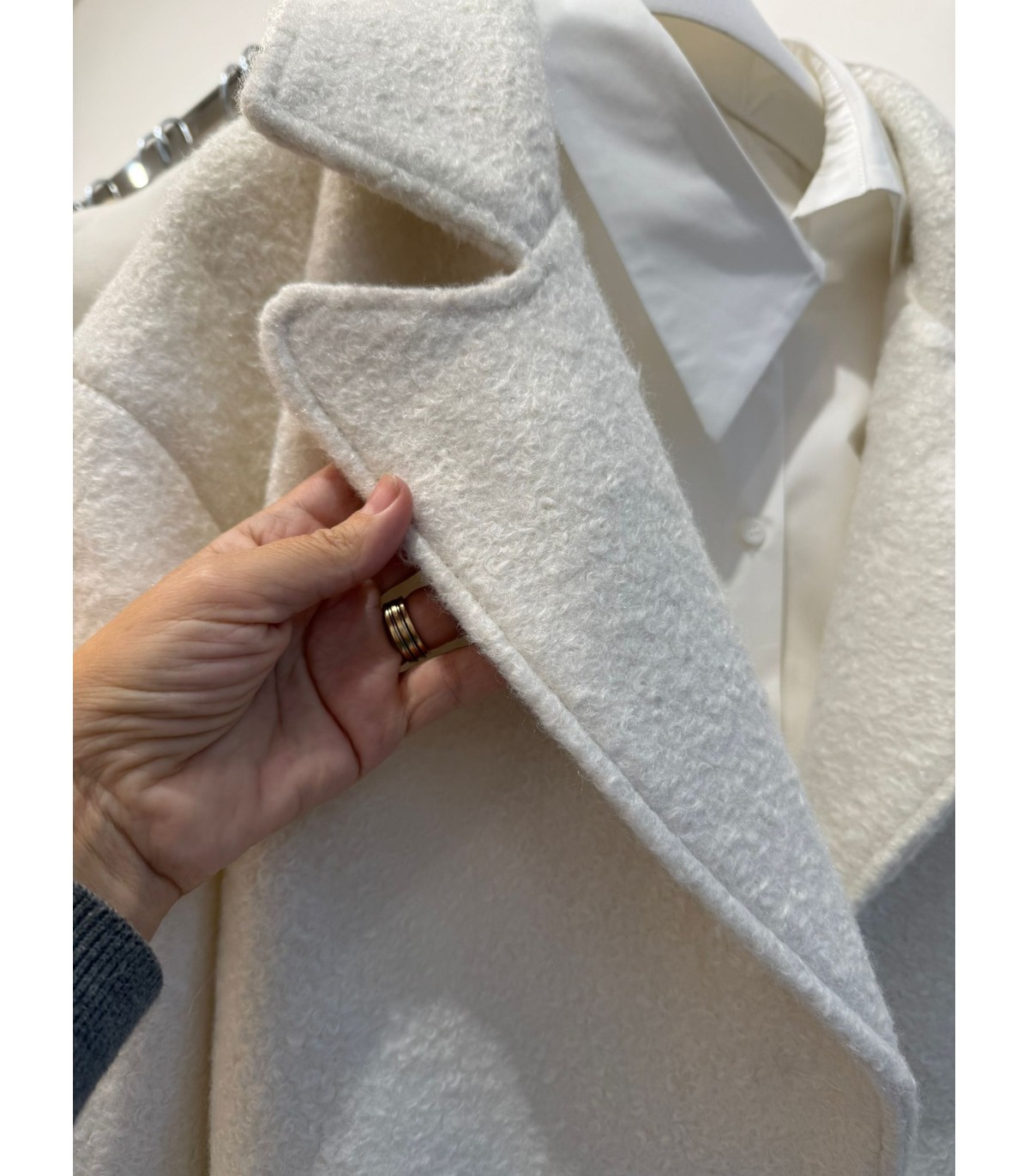 Palton scurt din stofa alb-IVOIRE bucle. Se incheie cu cordon si nasturi