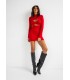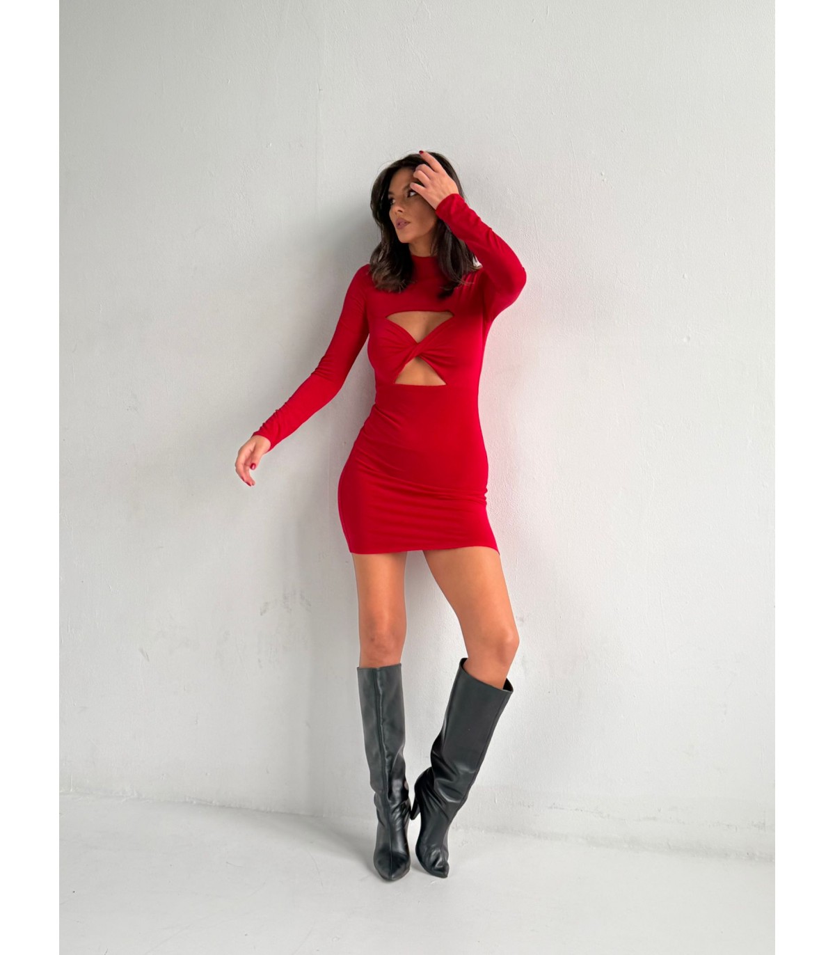 Rochie scurta din licra rosie, cu decupaje pe bust.