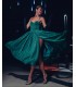 Rochie midi, din lurex turcoaz, cu cupe si slit adanc.