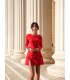 Rochie scurta din bistrech roşu, cu slițuri frontale şi funde din acelasi material