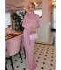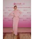 Rochie lunga din licra roz pudra elasticaa cu accesoriu auriu
