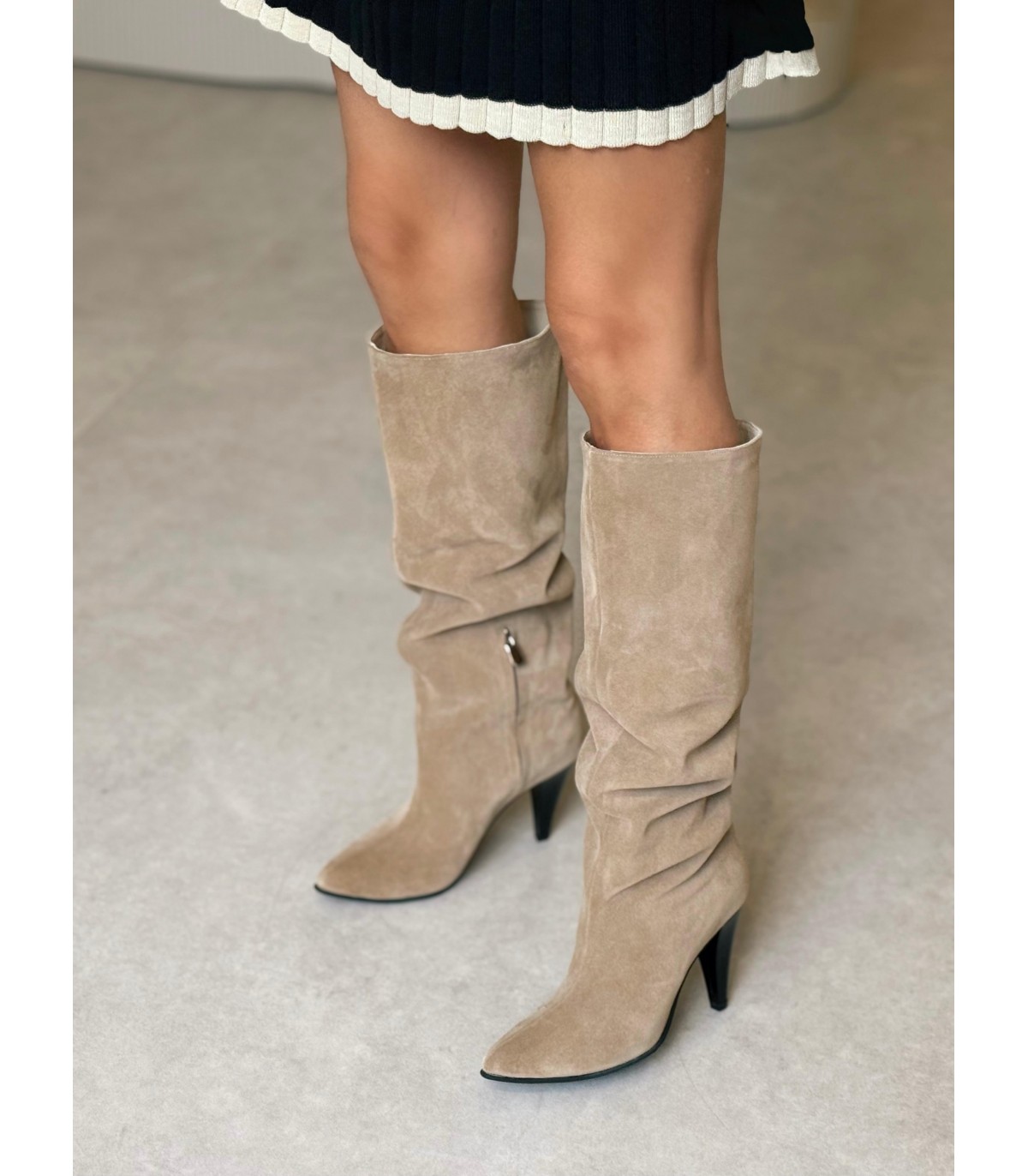 Cizme din piele intoarsa camel, captusite cu piele naturala la interior.