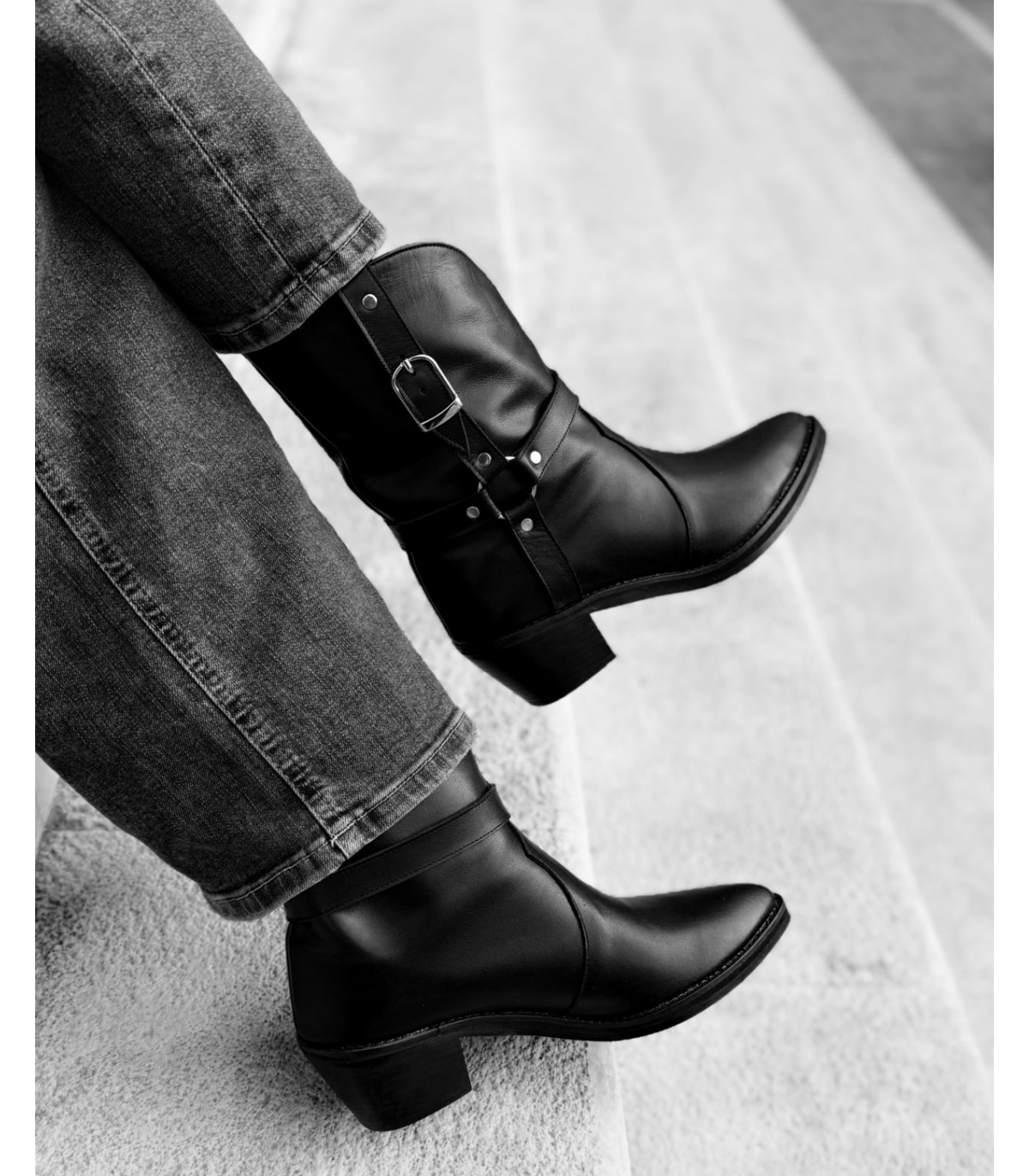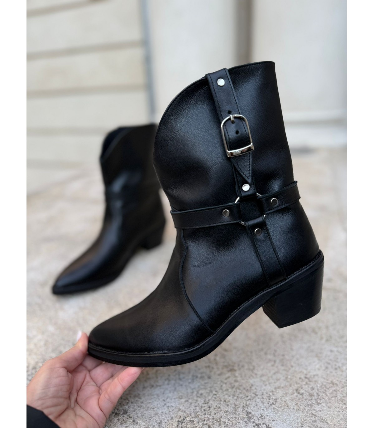 Ciocate din piele neagra neteda tip box, cu accesorii argintii, toc de 6 cm. Ciocatele sunt captusite cu piele naturala.