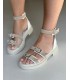 Sandale din piele alba si bej (velur), accesorizate cu catarame argintii.
