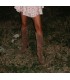 Ciocate lungi, din piele alba bizonata, cu patru patarame. Toc de 4,5 cm