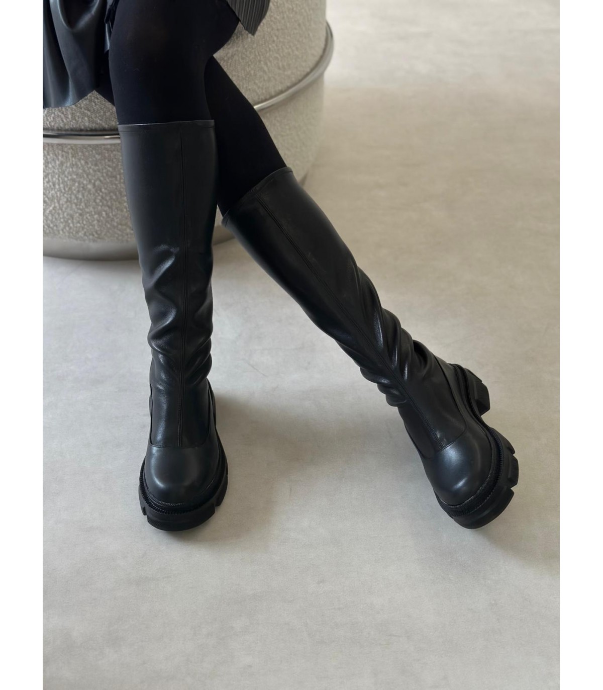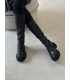 Sandale din piele negru si bej, accesorizate cu catarame argintii. Sistem de inchidere: catarame