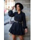 Rochie din poplin satinat negru , cu insertii de dantela, talie elastica si cordon detasabil.