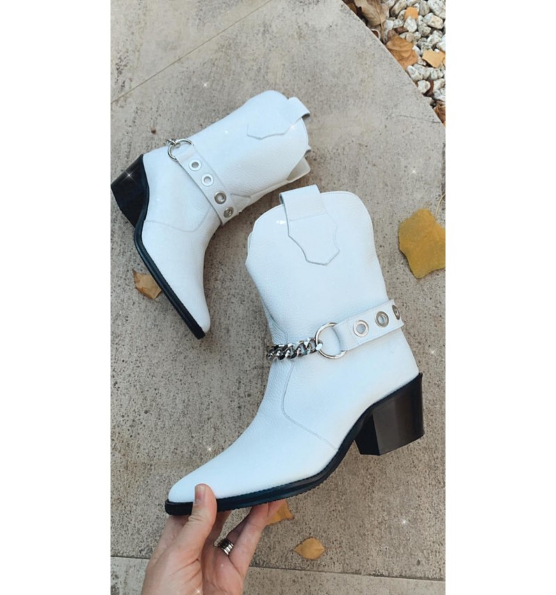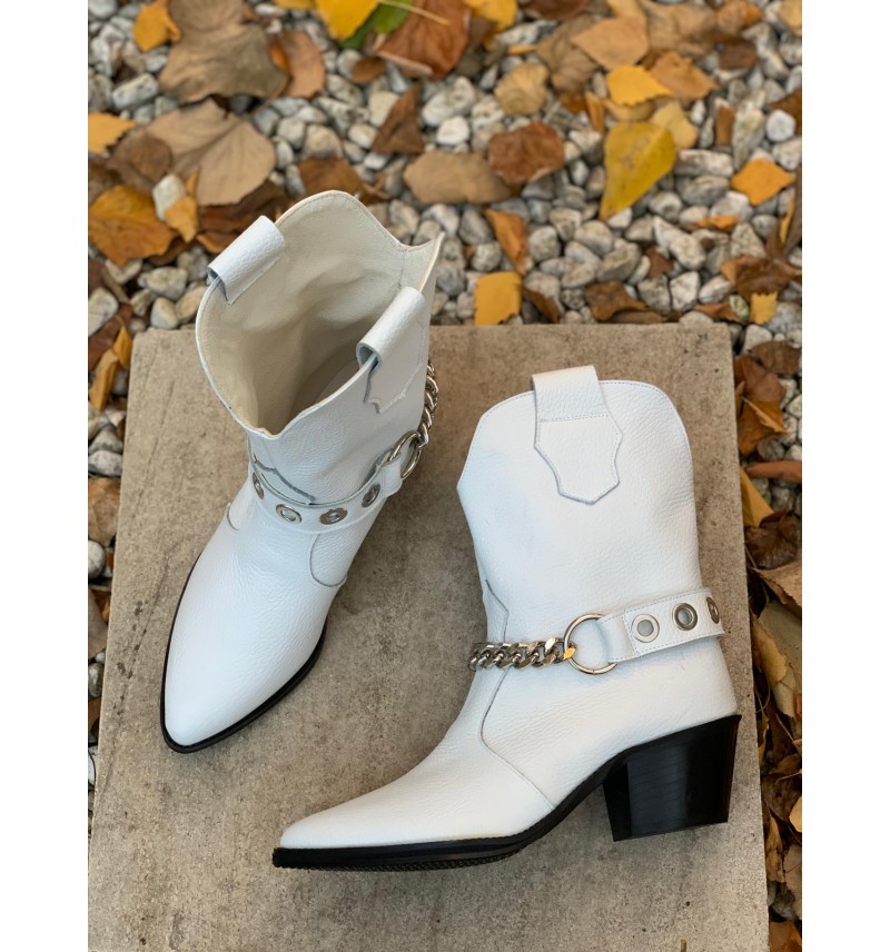 Ciocate din piele alba, bizonata, cu barete cu lant, detasabile.