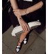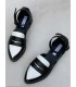 Balerini din piele neagra, cu golf alb, talpa usoara, flexibila, si inchidere cu bareta pe glezna.