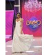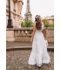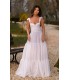 Rochie lunga din voal alb cadrilat cu transparențe.