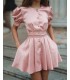 Rochie scurta din tafta mata plina de culoare roz pudrat