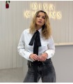 Camasa lejera din voal satinat creponat cu funda mare detasabila.