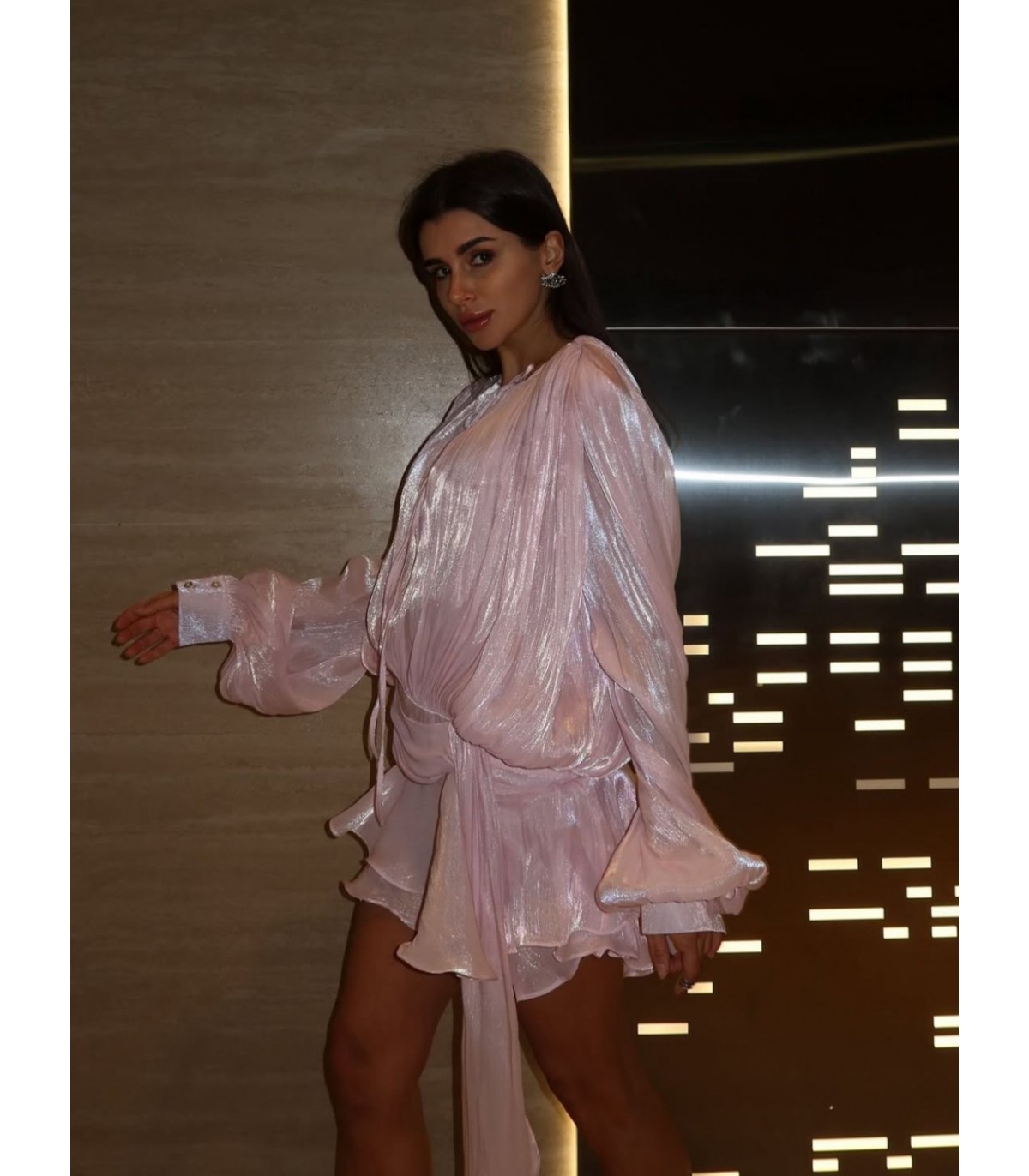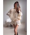 Rochie lunga, neagra din ploveras tricotat cu sclipici argintiu -decolteu lung pe fata -bust captusit cu fronseuri pe talie -maneci evazate -este prevazuta cu esarfa EDITIE LIMITATA Se potrivește pentru dimensiunile:...