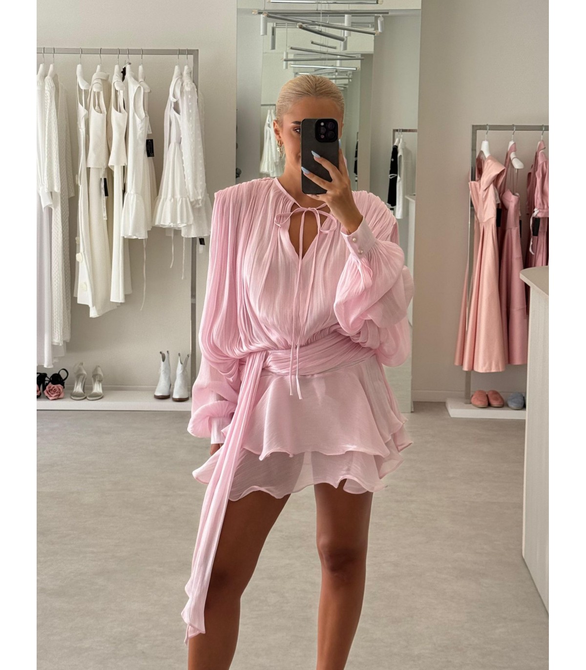 Rochie midi din lycra maro, cu decolteu cu floare decorativa -inchidere cu fermoar la spate -floare la gat -prevazuta cu un cordon fronsat pe talie, care cade pe laterale XS: bust 88, talie 60-64, sold 90-92 S: bust...