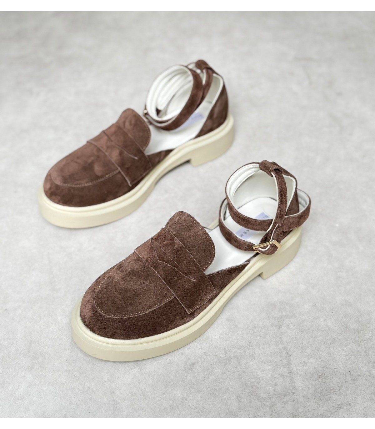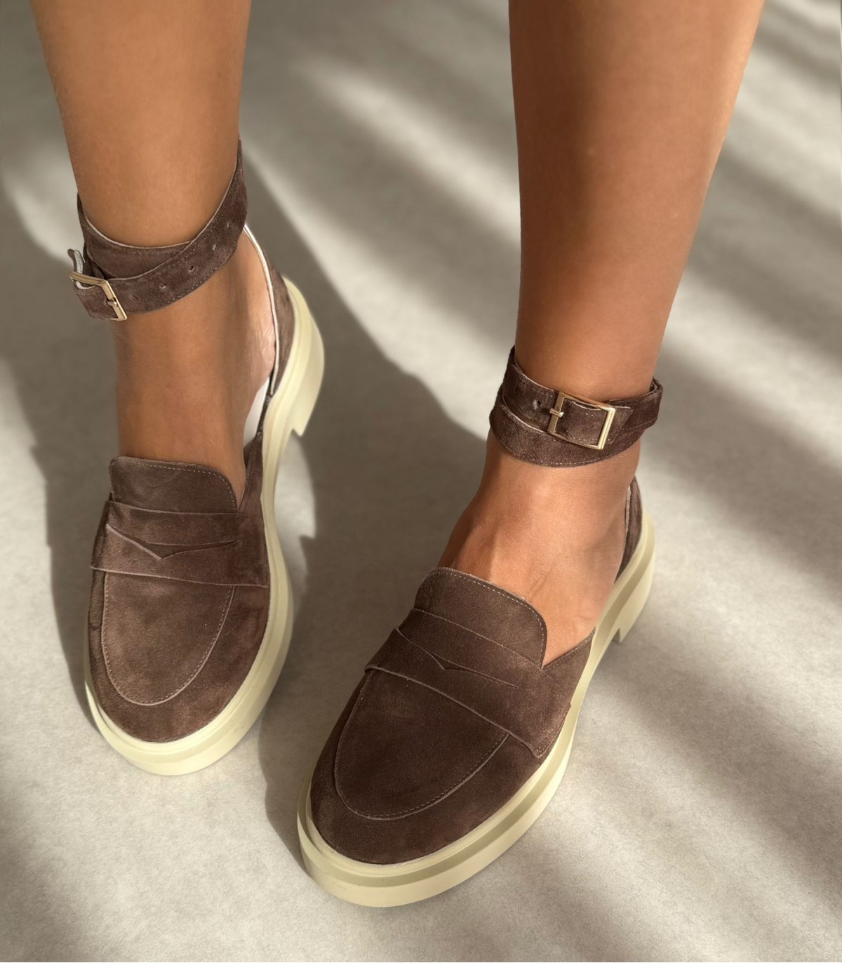 Balerini din piele naturala intoars maro, captusiti integral cu piele naturala.