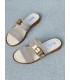 Papuci cu 2 barete din piele naturala captusite  si accesoriu auriu tip catarama